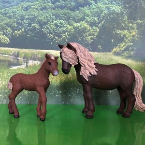 Schleich islandpony stute mit fohlen. Die eisigen winde und die karge landschaft machen ihm nichts aus, weil es ein dickes fell hat, ganz besonders im winter. Die schleich figuren sind alle detailgetreu modelliert, liebevoll handbemalt und stehen für pädagogisch wertvolles spielen. Das pony ist ein kleinpferd und toll für arbeit und hobby.